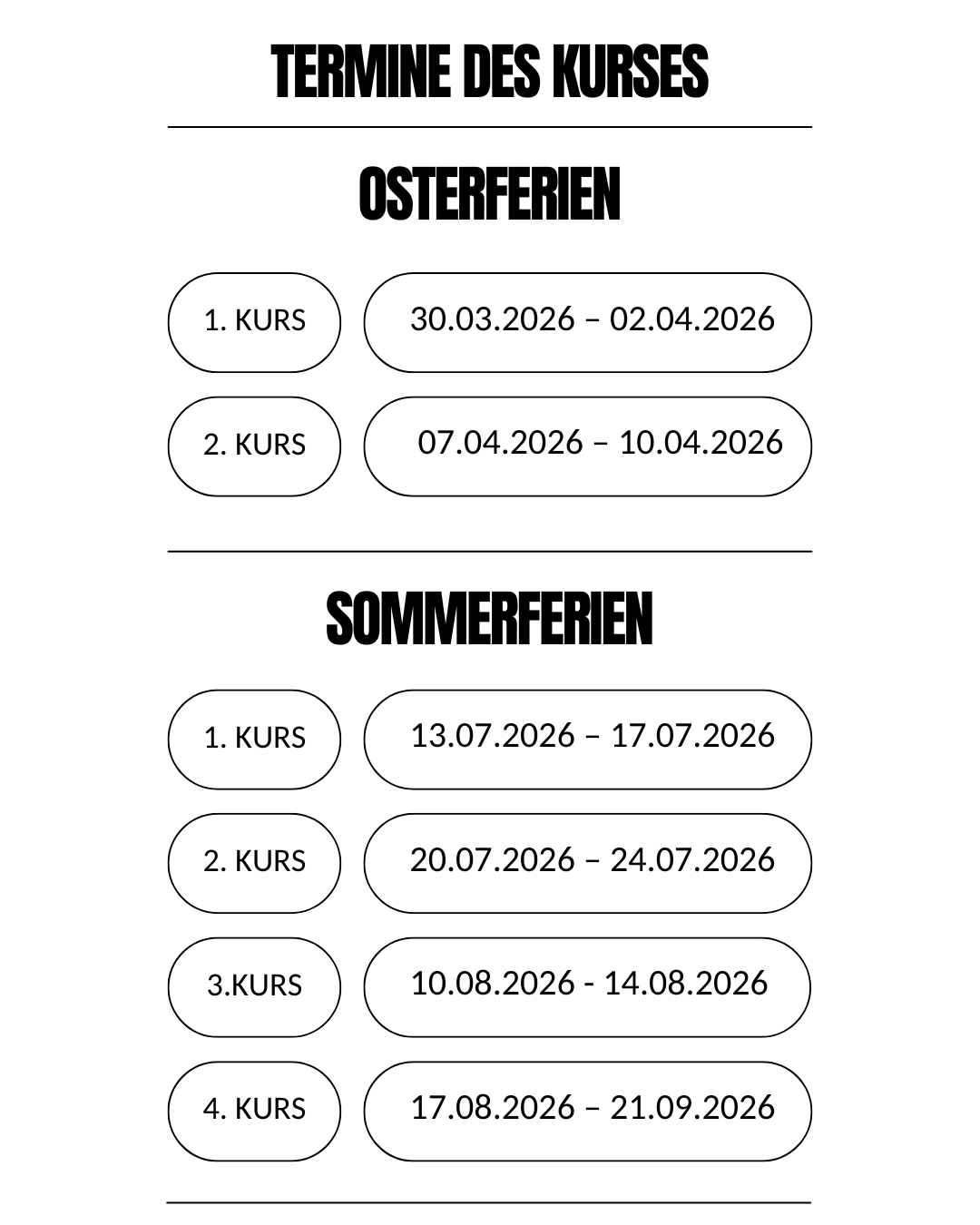 Die Sommer- und Herbstferienkurse: 5 Tage, je 4 Stunden täglich.